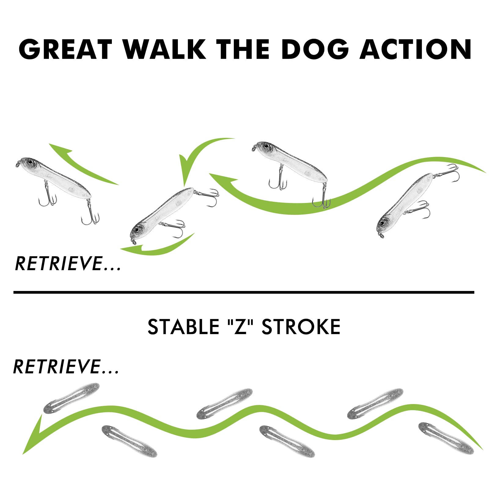 • Lifelike Design - Classic pencil lure with 3D eyes and laser effect scale which fish can see from a great distance. Attract fish by reflecting lights from all directions.